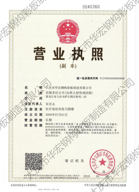 華宏鋼構(gòu)始建于2009年8月9日,總部位于大慶市薩爾圖區(qū)南一路13號,現(xiàn)有大慶市華宏鋼構(gòu)彩板制造有限公司、黑龍江省華宏力安綠建科技有限公司、大慶市華宏鋼構(gòu)彩板制造有限公司長春分公司、黑龍江省海森新材料科技有限公司、大慶市瑞和通螺栓廠五家工業(yè)企業(yè)形成了以彩板復合板、裝配式鋼結(jié)構(gòu)建筑、保溫材料、配件制造為主的五大生產(chǎn)基地,占地總面積 20余萬平方米,生產(chǎn)車間5萬平方米。中高層管理干部26 人,高級工程師9人,各類國家注冊執(zhí)業(yè)人員 32 人,車間技工 260人,專業(yè)安裝隊伍 10 余支,帶動就業(yè) 500